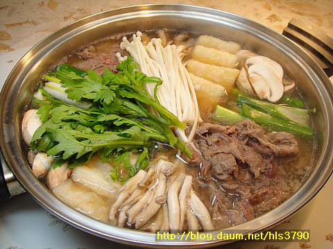 간을 본후 마지막에 팽이버섯과 쑥갓을 가운데 부분에 놓은 후 한번 만 더 끓인후 드시면 됩니다~~
