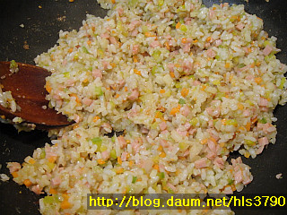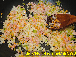 모든것을 잘게 썰어서 준비해주세요.....햄도 잘게 썰어주세요....