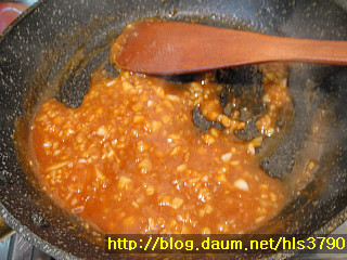 프라이팬에 1/3T정도의 식용유를 두룬후 다진양파3T를 넣어 살짝 볶다가
