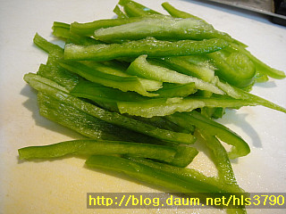 피망1개도 곱게 채썰어준비합니다.
