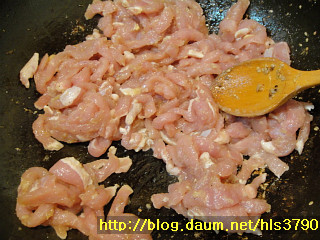 양념에 재운 돼지고기도 식용유1/2T 넣고 센불에서 5분정도 볶아줍니다.