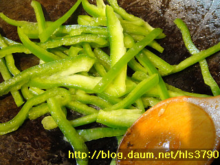 ==> 홍피망이나 홍고추를 넣으면 더욱 색깔이 예뻐요...저는 어제 홍피망을 못구했답니다..