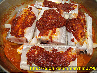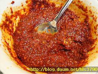 양념장: 고추가루7T. 다진마늘1T. 다진생강1/3T. 진간장9T. 맛술4T. 후추가루약간. 참기름1T.