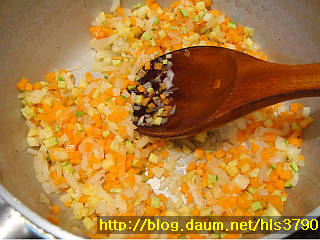 3. 프라이팬에 소량의 식용유를 두룬후 양파. 당근. 말타리벗서을 볶아줍니다...