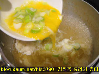 ( 계란을 너무 풀지마시고요..수저로 2~3번 저어 주세요)