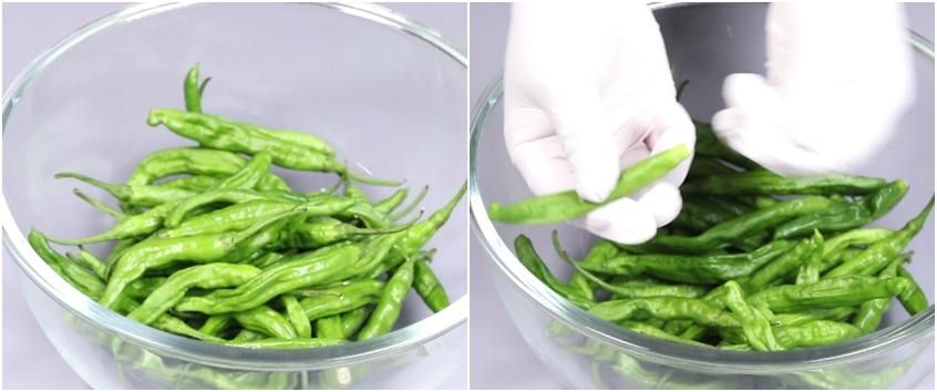 3. 세척한 꽈리고추에 물기라 꼭 있는 상태로