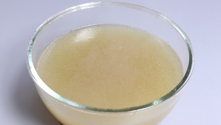 8. 기름기 걷어낸 닭육수를 냄비에 붓고