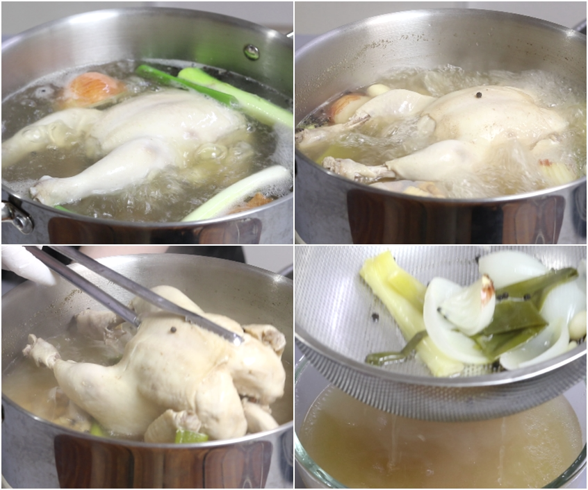 2. 큰 냄비에 손질한 닭을 넣고요~