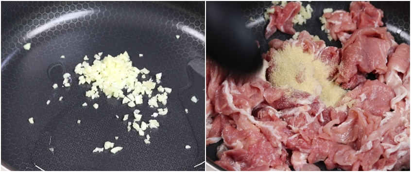3. 팬에 식용유1T.다진마늘1T를 넣고