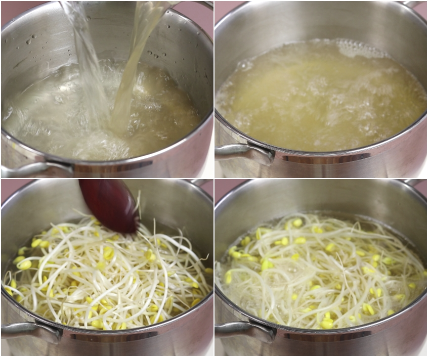 센불로 켠후 끓어오르면 콩나물을 넣어줍니다.