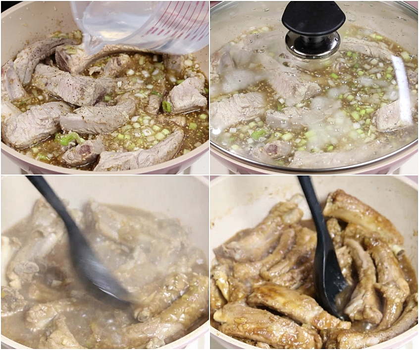 5. 양념에 버무린 갈비에 물을 400ml를 부어주시고요~