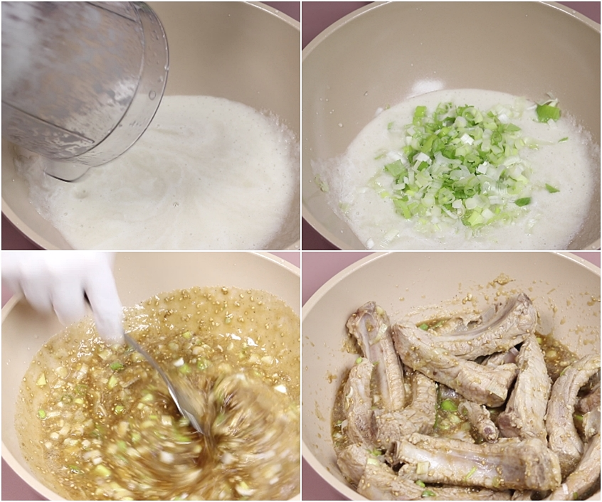 여기에 데친 등갈비를 넣고 버무려 양념에 재워줍니다.