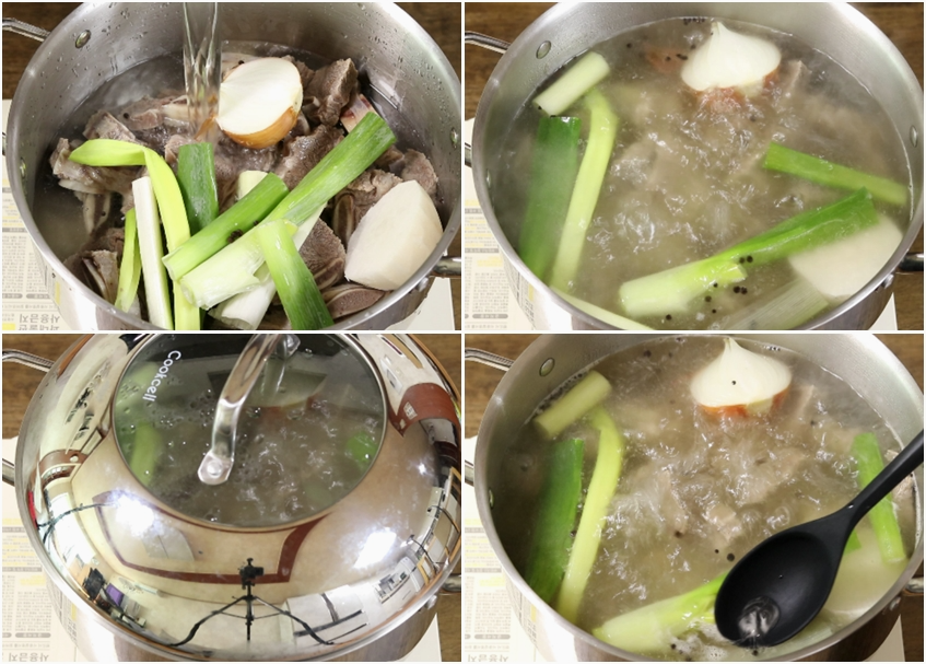 ** 1차 데친 소갈비 1시간 끓일때 : 대파1개.양파반개.통후추1T.