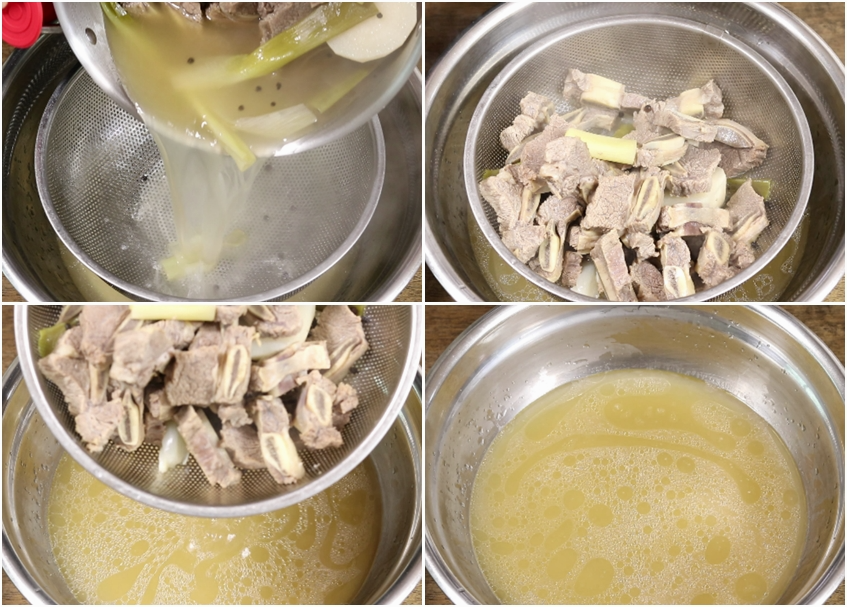 7. 위 3번에서 1시간 푹 끓인 갈비를 체에