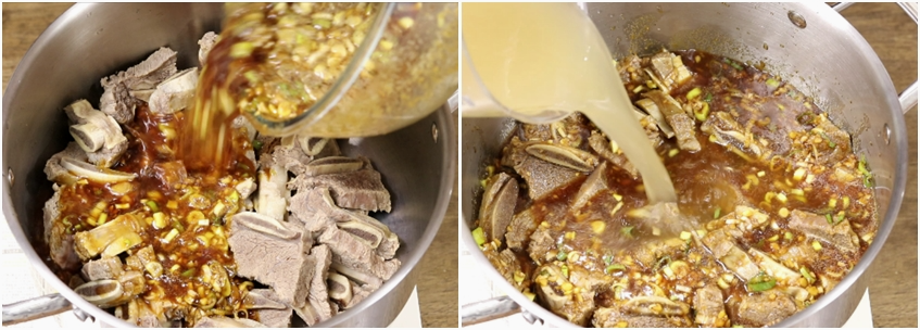 걸러낸 갈비육수 1L를 부어줍니다.