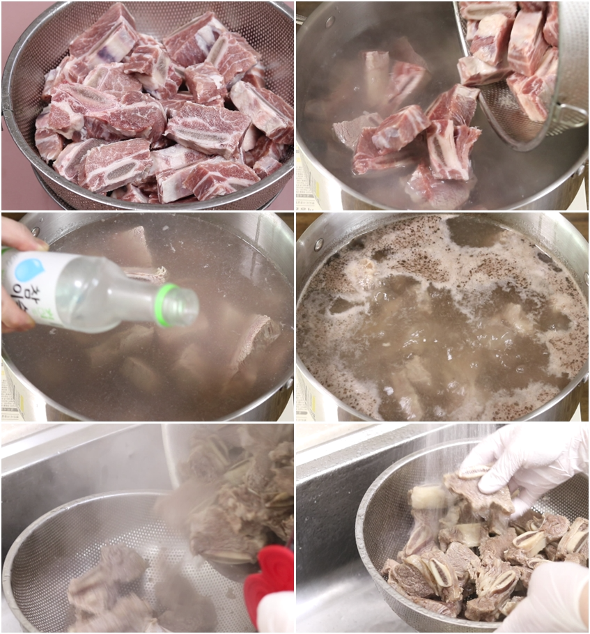 ** 핏기 제거한 소갈비 1차 데칠때 : 소주50ml.