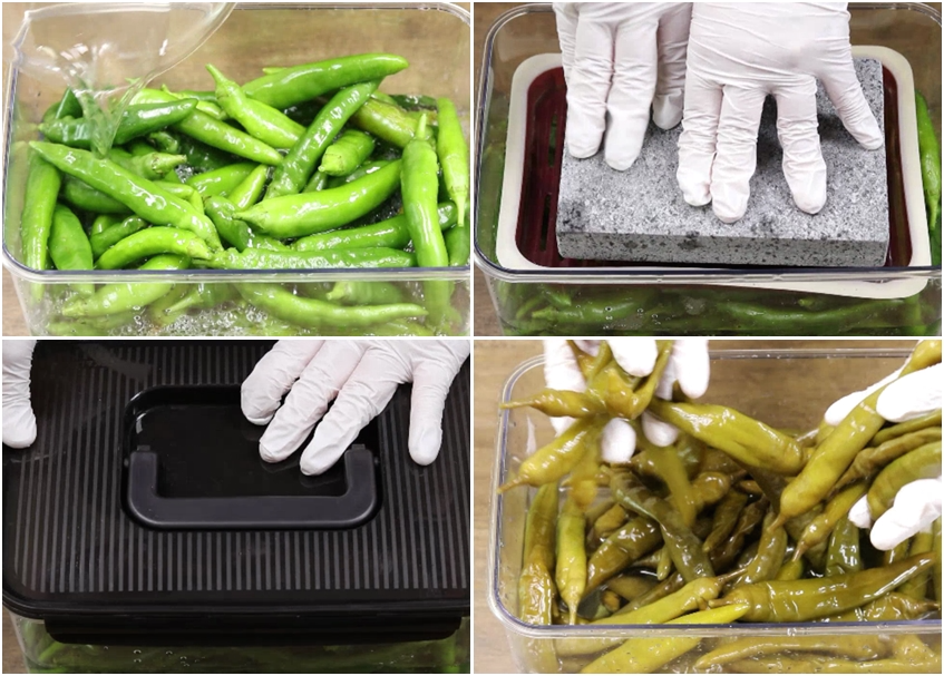 ***삭혀진 고추를 장시간 보관하고 싶을때는 눌림돌만 제거하고