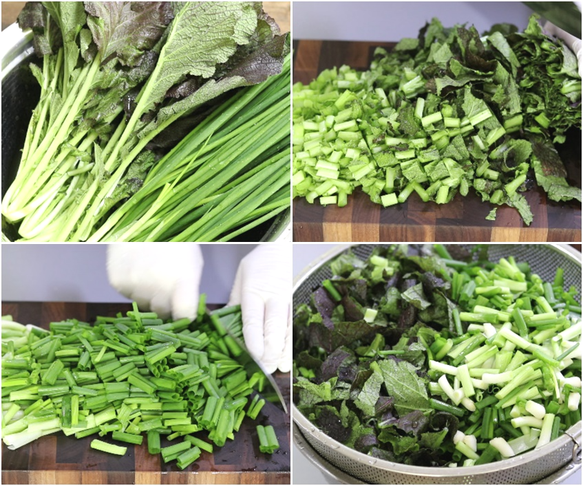 3. 홍갓400g.쪽파200g 세척하시고요~2cm정도 길이로 썰어 준비합니다.