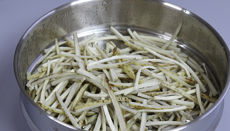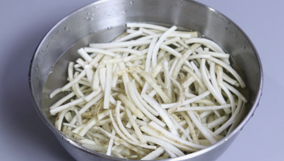 3. 썰은 우엉을 잠시만 물에 담궈줍니다.