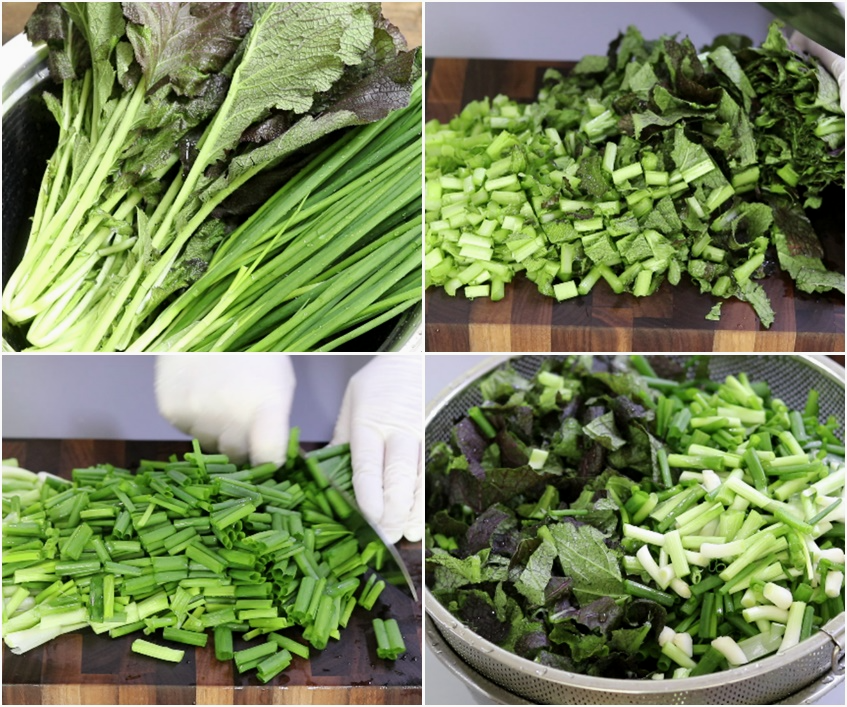 7. 홍갓300g. 쪽파200g 세척하시고요~ 2cm정도 길이로 썰어 준비합니다.