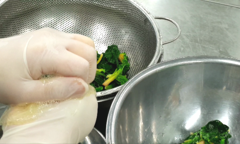 5. 데친 시금치를 손으로 짜준후 그릇에 넣고 뭉쳐있는것을 풀어줍니다.