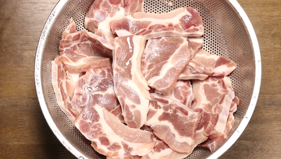 5. 핏기뺀 갈비는 체에 받쳐 물기를 빼줍니다.