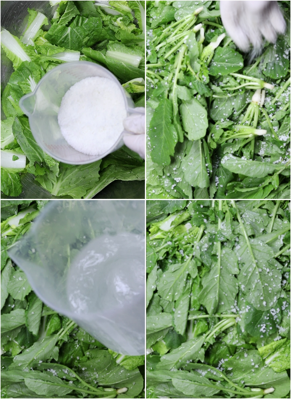 5. 열무와 얼갈이를 절이는데요 절일때 천일염이 350ml 들어갑니다.