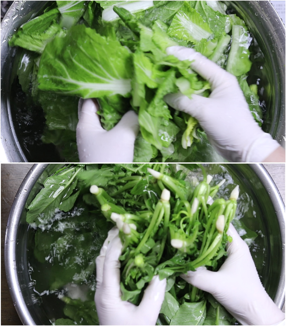 4. 손질한 얼갈이와 열무를 절이기전에 한번만 살살 세척해줍니다.