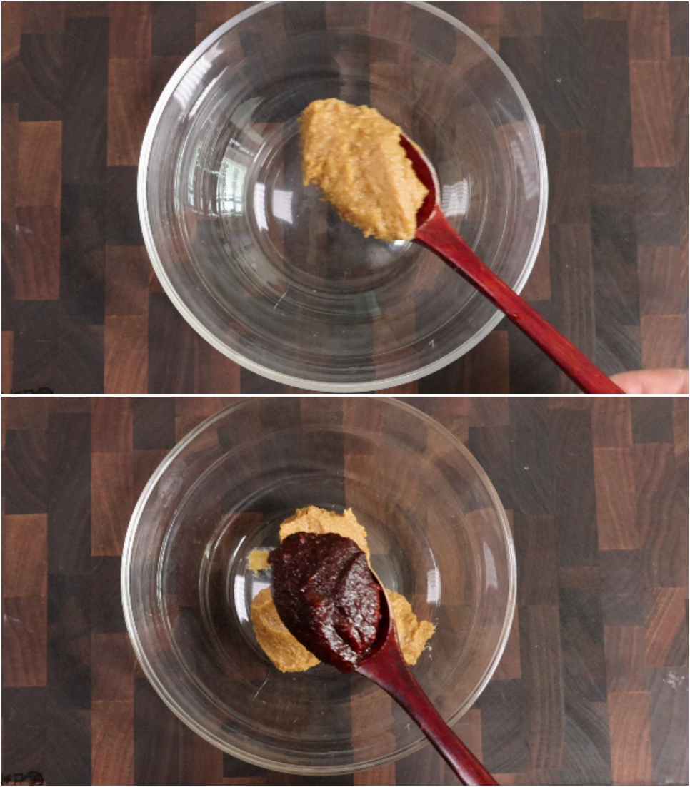 1.된장3T 준비합니다. 시판하는 된장이나 재래된장 모두 괜찮습니다.고추장1T반 준비합니다.