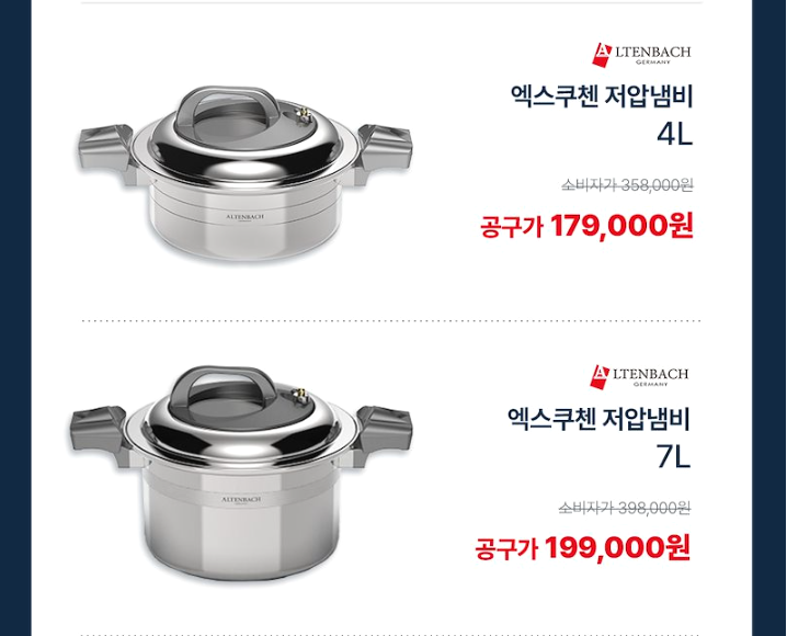 요즘 핫한 알텐바흐 저압냄비 공동구매 진행합니다.