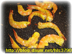밑간한 새우에 밀가루-> 계란을 입힌후 후라이팬에 식용유 두르고 노릇하게 지져줍니다.