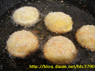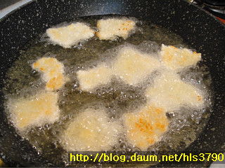 4. 후라이팬이나 튀김팬에 식용유를 두른후 노릇하게 튀겨주시면 완성입니다...