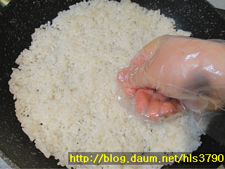 약불로 줄인후 물2T를 찬밥위에 골고루 뿌려주세요.... 이 상태로 20분정도 놔둡니다...
